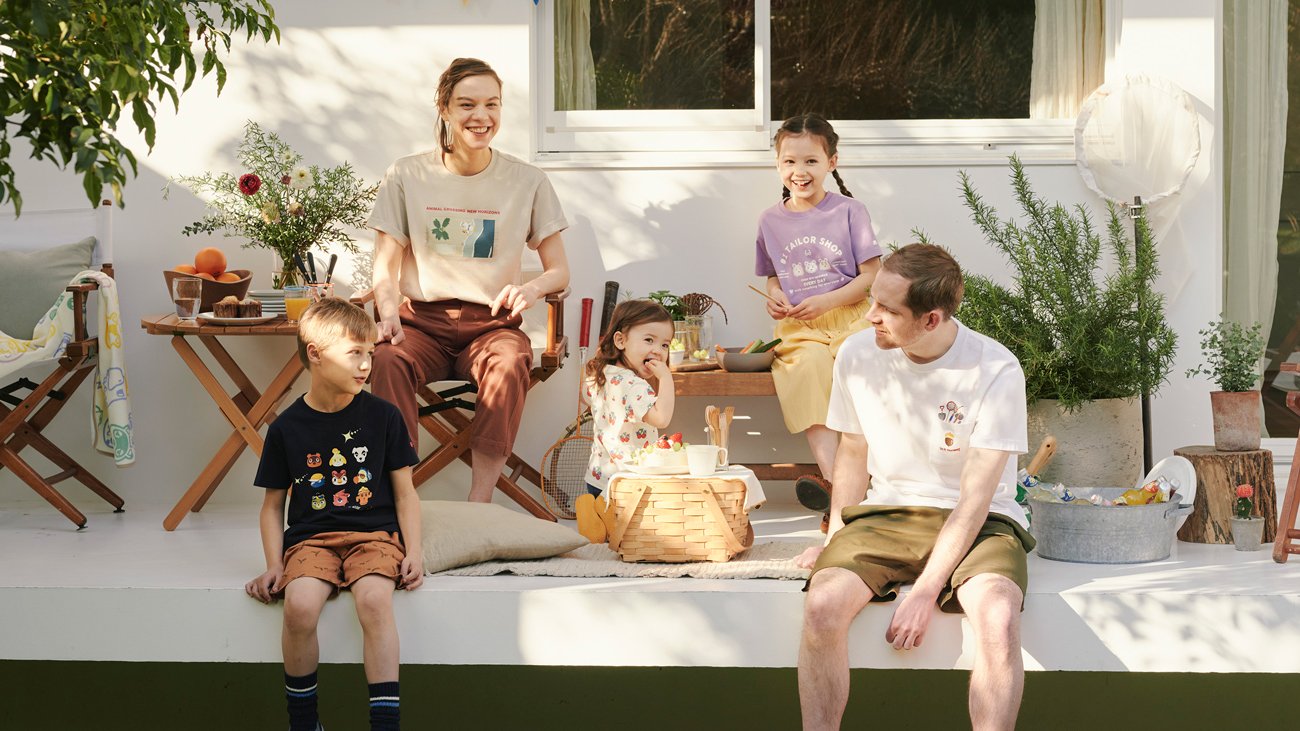 The UT collection of men’s, women’s, kids’, and baby items can be enjoyed by people of all generations. Designs inspired by the fancy-free, slow life possible on New Horizons islands are presented on T-shirts, as well as tote bags, blanket towels, and other goods.